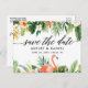Caligrafia Elegante Moderna, Coral Tropical de Watercolor Floral e Casamento Verde Salvem o Cartão-Postal