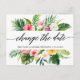 Moderna Caligrafia Script Watercolor Tropical Floral Mudança Tropical A Data de Casamento Adiou Novo Anúncio de Data Apresenta flores tropicais e verde
