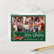 Cartão-postal de Natal Feliz 3 Feriado de Música Moderna - Caminhão Vermelho Vintage de Watercolor com Árvore de Natal - Fundo Verde Florestal