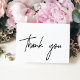 Este cartão postal de caligrafia é perfeito para um casamento moderno. A design apresenta uma tipografia elegante, mas rústica, para um simples aspecto mínimo. Personalize a parte traseira do cartão postal com seus nomes, seu endereço de devolução e uma mensagem de obrigado. Como alternativa, deixe o vazio da seção modelo para enviar uma nota personalizada e ponderada em cada cartão após a sua chegada. Essas cartas podem ser usadas para um casamento, chá de panela ou qualquer evento especial.