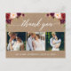 Caligrafia Moderna, Watercolor Burgundy Marsala Floral, Casamento 3 Foto Obrigado Kraft Cartão Postal