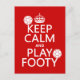 Este design diz "Manter Calmo e Jogar Pé". Mantém a coroa tradicional no topo, a partir do poster original de Manter Calmo. Também tem as silhuetas de duas bolas de futebol ou bolas de futebol, balançando nas cartas. É um design excelente que faz presentes maravilhosos para qualquer um que ama futebol, perfeito para festas de aniversário de futebol obcecado em qualquer idade. Se quiser alterar a cor de fundo, basta pressionar 'personalizar'. Ou se você quiser outras mudanças - ou ver a design de um produto diferente - entre em contato comigo através da minha loja e verei o que posso fazer.