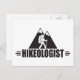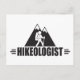 HIKEOLOGISTA. Título humoroso para alguém que ama caminhar - e tem senso de humor. Faz um presente único e engraçado para um caminhante, trilha, alpinista. Um design preto e branco que apresenta montanhas altas e nevadas ao fundo e um caminhante com mochila em primeiro plano. Encontre mais designs engraçados como este na Loja Ologista.