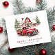 Caminhão Vermelho Retro Saudação de Natal Feriado Fotografia Postal.