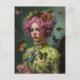 Cartão Postal Camisa verde de cabelo roxo Ivy e borboleta