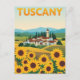 Viaje para o coração do campo italiano com este cartão postal retrô. A obra de arte apresenta uma paisagem clássica da Toscana, com uma vila encantadora aninhada entre colinas verdes onduladas e um campo vibrante de girassóis. Esta ilustração estilizada evoca o espírito pacífico e rústico da Itália rural, tornando-a um souvenir perfeito, um bilhete único para um amigo ou uma bela peça de arte retrô para sua casa.