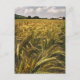 Este cartão postal de fotografia de arte apresenta uma paisagem cênica de verão de um campo de ouro amadurecido, grãos castanhos e amarelos, quase pronto para colheita. As fazendas e os celeiros estão muito distantes. As pedras estão soprando no vento para formar um adorável padrão de abstrato.