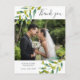 Cartões de agradecimentos de fotos de casamento com vegetação do jardim do campo apresentando uma delicada folhagem de aquarela, reunindo sua foto de casamento com sua obrigado você detalha na elegante fotografia de cinza de ardósia. Você pode personalizar o inverso com seus detalhes de evento, obrigado especial que você envia e devolve o endereço. Uma maneira perfeita de dizer obrigado! Projetado por Thisnotme©