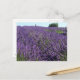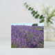 Campos de lavanda e uma ceifeira à distância. Vazio de volta ou personalização para convites ou anúncios.