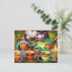 Enquanto a IA surreal gerada por arte digital sonho paisagem postal apresenta copos coloridos cheios de café.