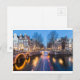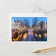Uma vista dos Canais de Amsterdão à Noite com o rasto de barcos a passar