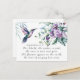 Belo cartão postal com uma escritura de citação inspiradora retrata um adorável design floral de aquarela com um beija-flor, simples lavanda, flores roxas e verde. Apresenta uma Bíblia Versa Canção animadora de Salomão 2:11-12, "Para sua surpresa, o inverno já passou; a chuva acabou e se foi. As flores aparecem na terra, chegou a hora de cantar." A saudação, a oração pode ser personalizada ou excluída para uma mensagem manuscrita.