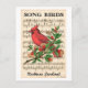 Norte Pássaro cardeal em uma ramificação vermelha florida com fundo de partitura