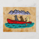 Canoagem de Labrador Retrievers no Cartão-postal da montanha. Whimsy e engraçado Canoagem Labrador Retriever Dog design. Dons de diversão excelente para amantes de cães que amam Labradores! Três de Labrador Amarelo e Labrador de Chocolate e Labrador Negro gostam de canoagem na vista da montanha. Feliz acampamento para fãs do laboratório. Criada por Naomi Ochiai do Japão.