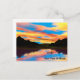 Uma canoa atravessando um lago de montanha refletindo as belas laranjas e blues de um pôr do sol colorido. Adicione seu próprio texto.