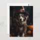 Um belo cão se posiciona com abóboras de arte gerada por IA