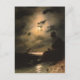Pintura a óleo por Ivan Aivazovsky, mostrando uma lua de praia iluminada na cena noturna da costa, com penhascos, torre de relógio e naufrágio.