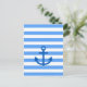 Âncora e faixas em cor azul e branca. Design náutica. Decoração com cores náuticas. Para amantes do oceano e da navegação