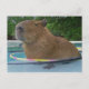 Caplin Rous sentado na piscina com os arcos de hoola ligados