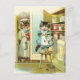 Vintage trabalho de arte da gata-mãe pegando seu pequeno gatinho em um banco deliciando o gosto dos guloseimas em um vidro.