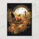 Noite de Halloween e a lua são cheios sobre a mancha de abóbora, onde um espantalho assiste sobre o distante campo de milho e um misterioso gato negro persegue um rato. Por Paxdomino