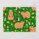 Cartão Postal Capybara Sketch com Flores de primavera em Verde