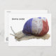Um caracol comestível com uma casca de bandeira francesa desejando-lhe "rota óssea!", que envie para pessoas que se deslocam ou viajam. O texto pode ser alterado para a sua própria mensagem.