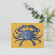 Gravação de madeira de caranguejo azul, em azul, sobre fundo amarelo.