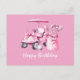 Carrinho de Golfe com Mulher Golfista de Aniversário PINK Cartão Postal