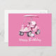 Cartão Postal Carrinho Rosa com Feliz Aniversário para a Mulher