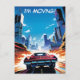 Uma representação cômica de um carro esportivo que corre em uma estrada em direção a uma cidade. Cores brilhantes, muita ação, design totalmente divertida nesta mudança de endereço postal.