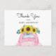 Obrigado seus convidados por comemorar a mamãe! Este obrigado que você faz com cartão-postal apresenta um carro cor-de-água rosa e girassóis. Personalize com suas informações ou clique em "Clique para personalizar mais" para editar estilos de fonte, tamanho e cores.