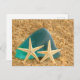 Duas estrelas bonito se inclinando contra um pedaço de vidro verde-marinho. Belo cartão postal para aqueles que amam a praia. Obrigados para procurar! Foto ©Christine Greenspan