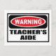 Cartão-postal AIDE do PROFESSOR que você pode personalizar em www.WarningSignShirts.com e apresenta um sinal de aviso vermelho e preto e o AIDE do PROFESSOR em letras negros para avisar o mundo. Você também pode personalizar seu próprio sinal de aviso Cartão postal com o texto desejado.
