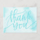 Modern abstrato watercolor Obrigado postcard com tons azuis com uma fonte de script. Edite isso com uma mensagem pessoal.
