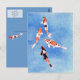 Ilustração a lápis colorida de quatro Koi ou Carp, flutuando num lago de água azul, um presente delicioso para quem ama peixe ou natureza. Também corresponde ao: