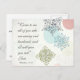 A citação inspiracional do cartão postal apresenta as palavras Bíblias do verso Matthew 11:28 de Jesus, "Venham a mim todos vocês que estão cansados e sobrecarregados, e eu darei a vocês o descanso." Ele tem um design de flores de flocos de neve muito bonito e único em tons de azul, cinza, verde e pêssego. A saudação traseira pode ser personalizada.*
