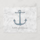 Perfeito para um casamento temático náutico é este cartão postal da mesa de casamento de âncora russa com uma âncora azul num fundo de cinza de luz. Este cartão de mesa clássico e simples é fácil de personalizar com seus detalhes de casamento. Localize mais opções de personalização clicando em Personalizar.