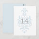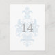 Moderno com elegância chic descreve este sofisticado número postal da tabela de Casamentos tema damasco sutis com um fundo azul-claro florescente. Este cartão clássico de mesa é perfeito para um casamento tradicional e pode ser facilmente personalizado com um número ou números de tabela ou detalhes do seu casamento. Para obter mais opções de personalização, clique no botão Personalizar Ti.