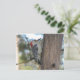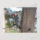 O cartão postal design apresenta uma fotografia de um pica-pau-pica-pau-cartilha.