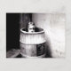 Cartão-postal mostrando a foto de uma garotinha escondida em um barril da década de 1930