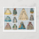 Este cartão mostra uma colagem de vestidos de bonecas de papel Jenny Lind, incluindo um vestido de noiva e vários vestidos de bola.