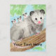 Uma pintura de uma boa mãe de gambá, pregada em um galho de árvore, com suas tripletas nas costas enfeita esse cartão-postal. Personalize mudando o texto para se adequar!
