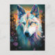 Cartão-postal de Arte Surreal de Vida Selvagem do Lobo Branco Boho