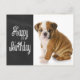Quem consegue resistir ao rosto de um Bulldog Pup Inglês? Este cartão-postal apresenta um cachorro-cachorrinho branco e bronzeado sentado sobre um fundo branco nítido com borda preta. Este doce cachorrinho está pronto para ajudá-lo a enviar saudações de Feliz Aniversário aos seus amigos e familiares. Cartões postais de aniversário personalizados são o alternativo econômico para receber cartões quando você quer enviar uma nota rápida. Alguns outros presentes e produtos de buldogue que você pode gostar... com.