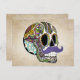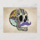 Ilustração desenhada à mão de um Dia do Crânio do Açúcar Morto a desportivar um bigode picante! Adicione texto para personalizar e você tem um cartão postal incrível! Esta é a versão colorida - há também versões em preto, branco e vintage, portanto, veja todos os designs e produtos disponíveis!