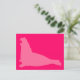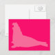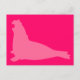 Um selo elefante cor-de-rosa-bolha num fundo rosa quente impresso apenas para vocês num cartão postal muito fino.