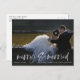 Este cartão postal de Natal. A frente do cartão foi projetada para mostrar sua foto de orientação horizontal favorita, com as palavras 'feliz & casado' na parte inferior em uma legal, sobre a tendência moderna da tipografia da camada de pincel d'água, e seus nomes, data do casamento e local na parte inferior. A parte traseira do cartão permite que você digite uma mensagem de feriado pessoal de obrigados e apresenta seu endereço de devolução. Este é um design de modelo e é muito fácil de personalizar para atender às suas necessidades. NOTA DO CRIADOR: A "sobreposição de vellum" neste produto é um efeito digital." Entre em contato com o designer para produtos correspondentes. Copyright Anastasia Surridge para Designs da Anastasia, todos os direitos reservados.