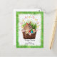 Este cartão postal de Páscoa apresenta um coelho querido e cesto com ovos coloridos. Há também uma coroa de flores amarela e rosada de girafa que é usada como alça de cesto. Personalize este cartão postal com o seu cartões de natal de Páscoa e o seu nome.