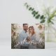 Anuncie seu casamento com a família e amigos com este cartão-postal de anúncio de fotos moderno. Ele apresenta um roteiro de tipografia de recem casados e uma foto de solteiro. Personalize adicionando nomes, data e mensagem.